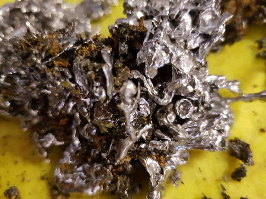 En la primera imagen podemos observar la más voluminosa de las formaciones que produjo el plomo al contacto con el agua. En ella, multitud de como filamentos delgados, lazos, cuerdas, y entre ellos, ojos -esferas lisas-, muchos de ellos enormes. Ataduras de desamor, de celo y envidia, mirada estrecha, mal de ojo con rabia. La segunda imagen nos muestra pequeñas aglomeraciones de plomo dispersas, y en todas, multitud de pequeños ojos y pinchos pequeños y filosos: mal de ojo y envidia de procedencias diversas.